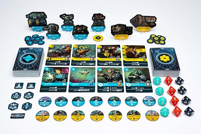 - Contents: 4 double-sided boards, Rulebook, Solo Rulebook, 135+ playing cards, 70+ tokens, 12 dice