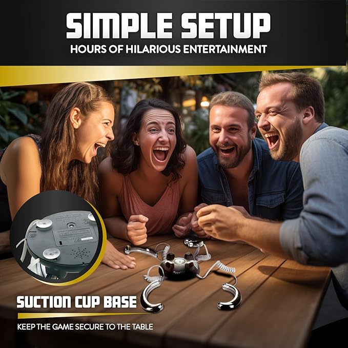 - HOW IT WORKS: Each player grabs a handle from the base. Press the button in the center, watch the red light blink and listen to the suspenseful music play. Wait for it…..when the red light turns green GO. Press the trigger button as quickly as possible. Be the last to react and get the electric shock.