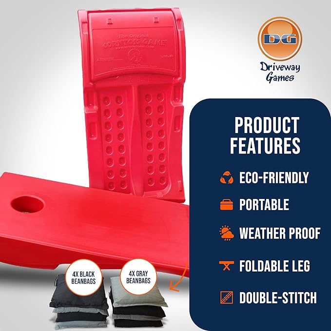 - Each set includes 2 red corn hole boards and 8 durable canvas toss bags in black and gray colors; Portable and easy to play with your family or friends
