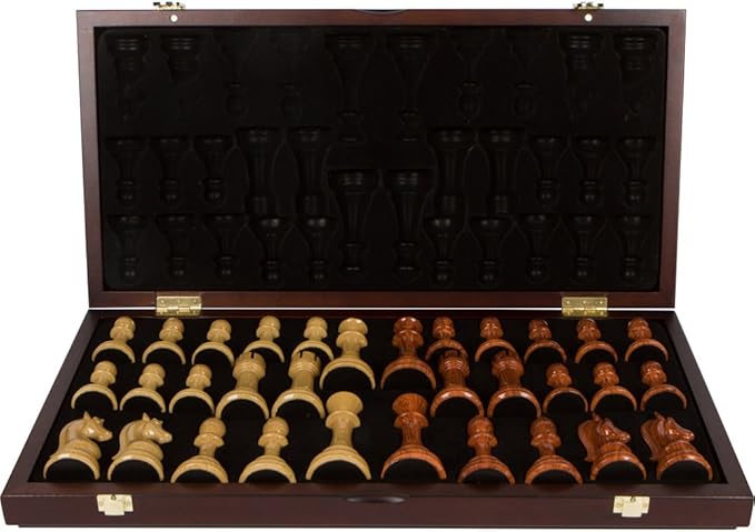Abigail Chess Inlaid Wood Folding Board Game with Pieces, Extra Large 21 Inch Set