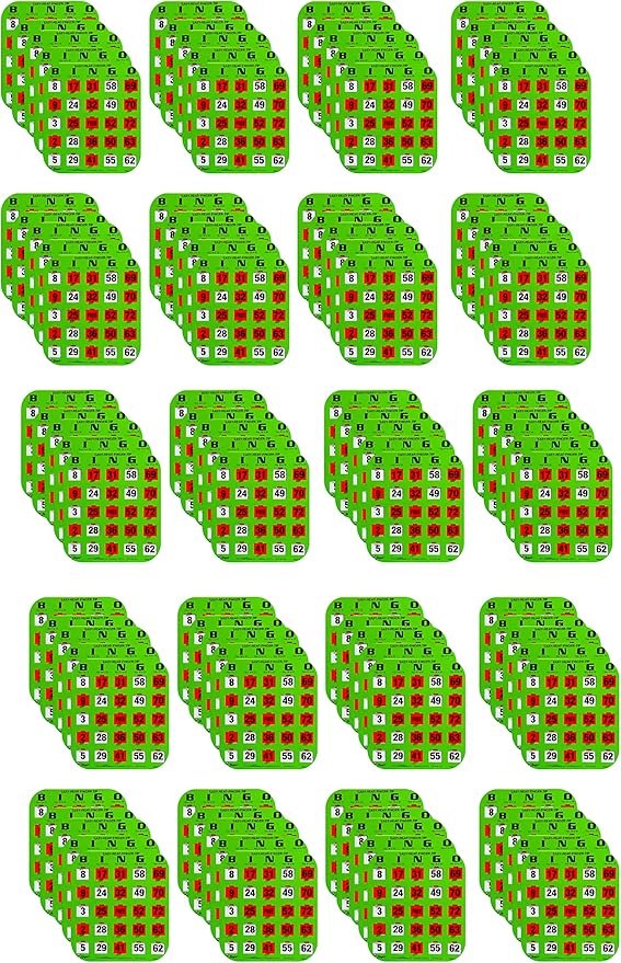 Regal Bingo - Shutter Slide Bingo Cards Only - 8” x 9” - 5-Ply Green Cardstock - Easy to Read - No Duplicates - Red Sliding Windows - Perfect for Large Groups, Bulk Purchasing