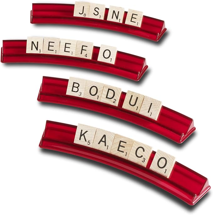 - Includes deluxe carrying case with Scrabble gameboard and two slide-and-store trays, 100 wooden letter tiles, 4 deluxe curved tile racks, plush drawstring letter pouch and gameplay guide