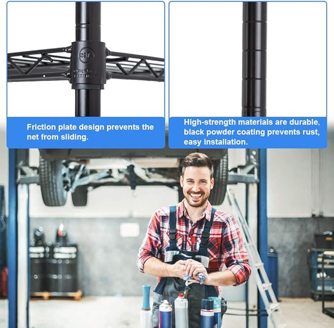 - 【MULTIFUNCTIONAL】: This commercial metal shelf is versatile and can be used in various spaces, such as in the bathroom, kitchen, or garage. The storage shelf provides a convenient storage solution for tools, books, clothes, bags, and more. This wire shelving unit helps keep your items organized and easily accessible.