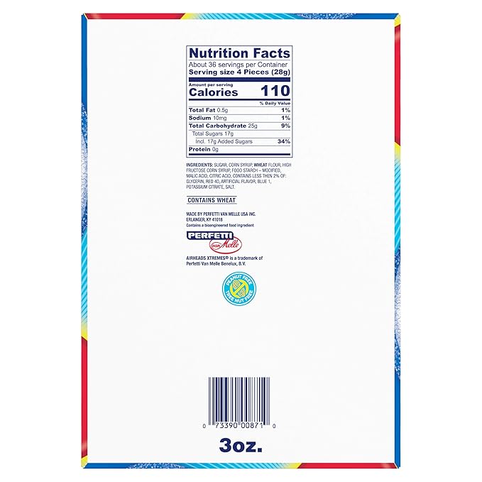 Airheads Candy, Xtremes Belts, Bluest Raspberry Flavor, Sweetly Sour, Non-Melting, Movie Theater, 3oz Packs, Box of 12 Packs