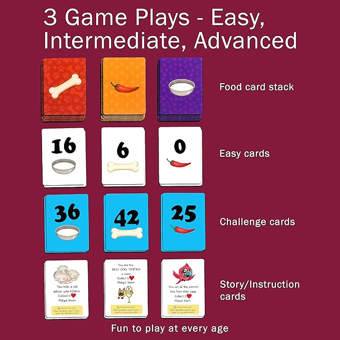 - HAVE FUN WITH MULTIPLICATION AND DIVISION: Pet Me is an exciting math board game. Kids go on a pet park adventure, feed dogs, cats and parrots, win hearts and adopt them. They will master multiplication and division facts along the way. A very cool and fun game that builds mental math skills.