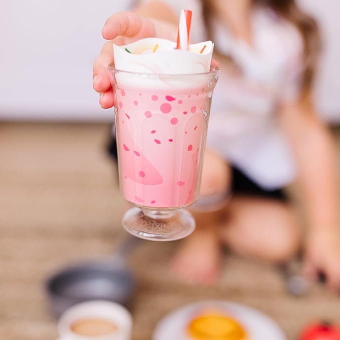 - Includes 7 wooden play food pieces with different foods on either side for multiple breakfast, lunch, dinner, and dessert options, plus double-sided coffee and milkshake inserts