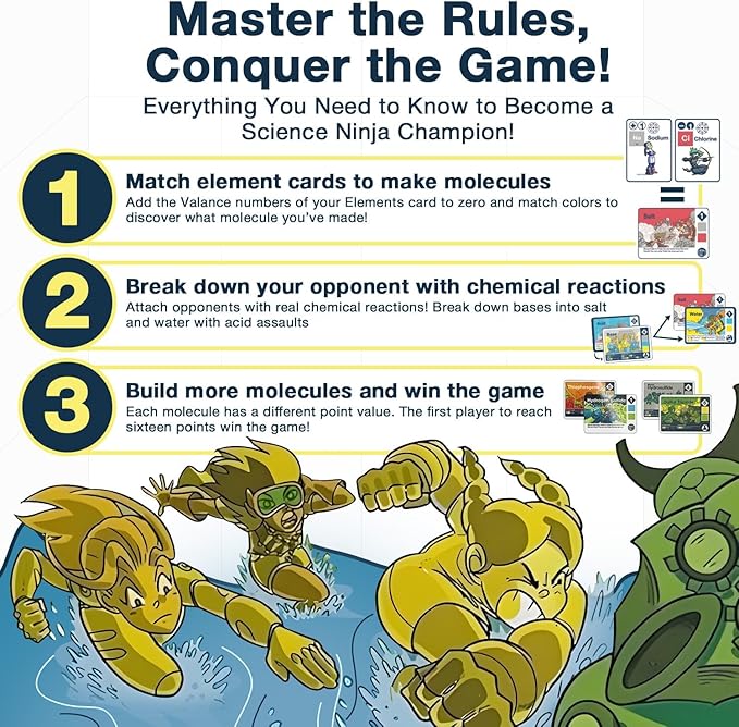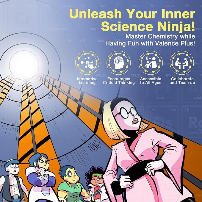 - ADVANCED CHEMISTRY GAME FOR TEENS AND ADULTS: Our Science Ninjas Valence Plus periodic table game challenges advanced learners with complex science through fun, interactive gameplay. With expanded content and more reactions, this chemistry periodic table interactive experience supports real-world STEM education through molecule-building and strategy, making it a stand out among stem board games for kids 8-12 and up.