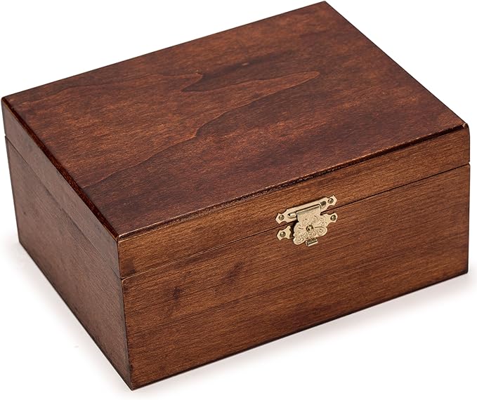 - Classic Storage: Stained and finished beechwood box with decorative metal clasp hardware finishings and lined with black felt to protect your pieces; Case measures 6.9 x 5.3 x 3.4" (17.6 x 13.6 x 8.5cm)