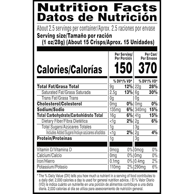- Includes 12, 2.5oz cans of ready-to-eat potato crisps; Packaged for freshness and great taste