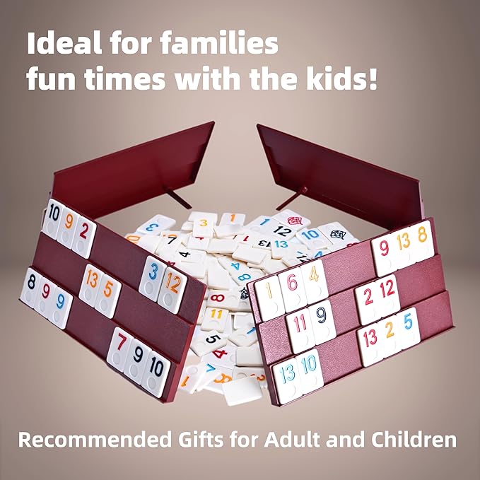 - ◆Package Including— Featuring one-piece tile racks and brightly-colored 106 High-quality tiles, easy-to-read numbered tiles, 4 red playing racks, 8 pcs Support stick and instructions.