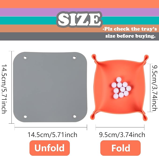 - [THE RIGHT SORT & WIDE APPLICATIONS] Organize your board game chits in five handy, portable dishes for easy access and sorting. The foldable dice tray have enough space which not only can hold your polyhedral dice while DND game, but also can be applied to hold many items, such as watches, jewelry, keys, coins, and candies etc.