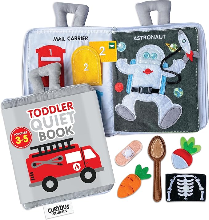 Curious Columbus Quiet Book Fabric Busy Book for Toddlers 3-5 - Airplane Toddler Travel Toys for Kids - Montessori Toy Preschool Activity Books - Fun and Educational for Toddlers