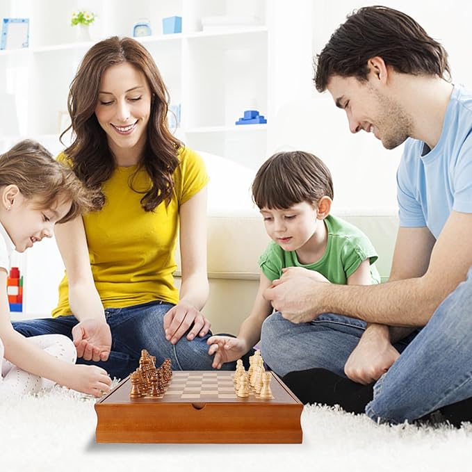 - Seven in One Games: The chess combo set includes all the game boards and pieces you need to play different games; chess, checkers, cribbage, backgammon, dominoes, playing cards, poker dice, and all of the game instructions are included