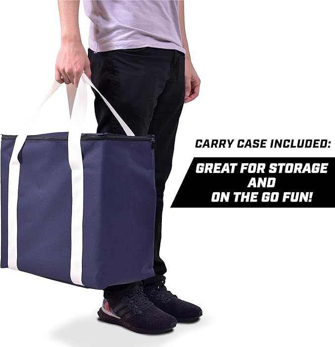 - GIANT SIZE: Toppling Tower starts at 2.5 ft tall and grows to over 5 ft during play; Includes 54 giant blocks (18 rows), carrying case and custom rules board; Each block measures 7.2 x 2.4 x 1.5 inches