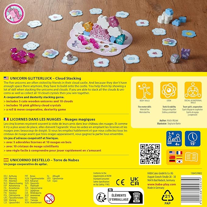 HABA Unicorn Glitterluck Cloud Stacking - Cooperative Kids Board Game - Fun Games for Kids and Unicorn Games Ages 4+ Made in Germany