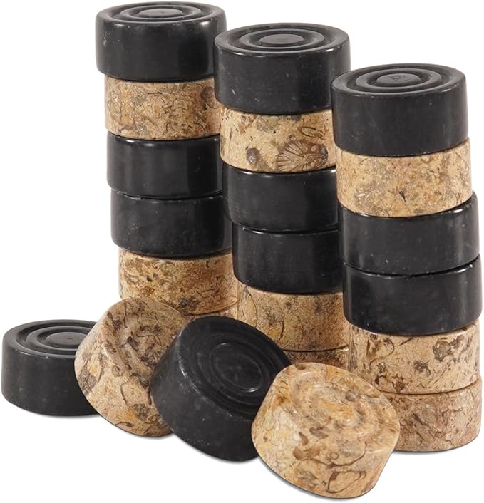 Radicaln Marble Checker Figures 1.25'' Inches Black and Coral Handmade Outdoor Board Game Draughts Checker Pieces Travel Chess Set Classic Board Game Checkers Outdoor Games