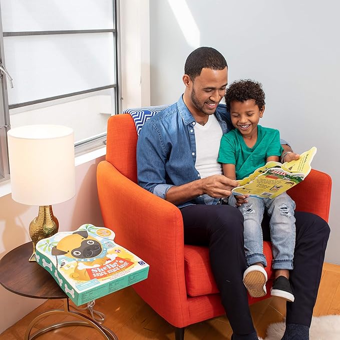 - INCLUDES: A colorful game board (which doubles as storage), 1 Shelby Squeezer, 40 bones, 4 bowls, 1 double game spinner, and game guide AND sturdy board book with 12 pages of lift-the-flap fun.