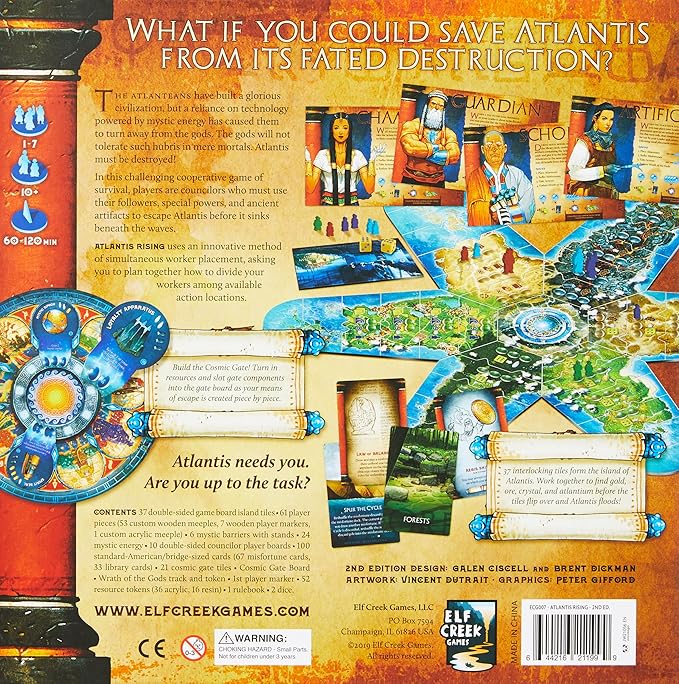 - In this challenging mission of escape and survival, 1-7 players take on the role of the leaders of Atlantis and their followers, councilors tasked with building the components of a cosmic gate that can lead their people to safety.