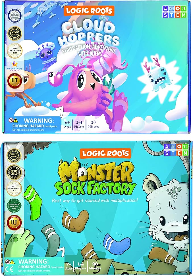 - 2 AWARD WINNING STEM GAMES: Cloud Hoppers is additional and subtraction game. Monster Sock Factory is a game to master multiplication facts. 3 critical math skills in one box