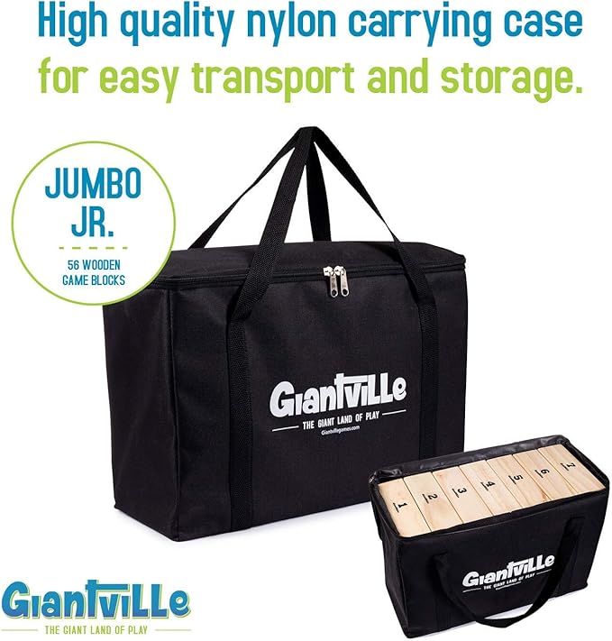 Giantville Giant Tumbling Timber Toy - Premium Pine Wood Life-Size Blocks Tower - Big Floor/Board Indoor/Outdoor Yard Game for Kids & Adults - 56-Pieces + Carry/Storage Bag - Grows to Over 4-Feet
