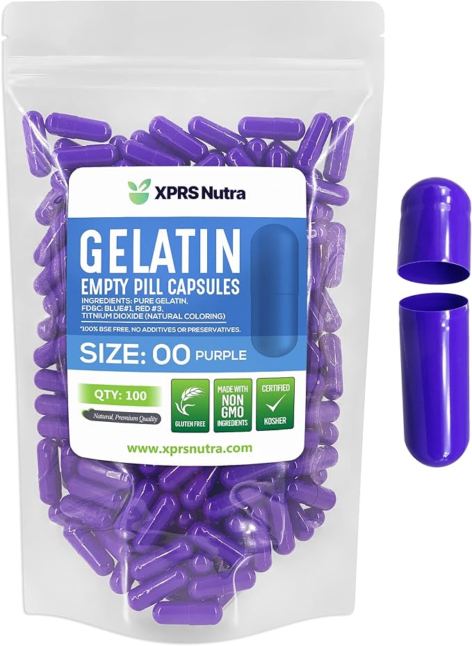 XPRS Nutra Size 00 Empty Capsules - 100 Count Empty Gelatin Capsules - Pills DIY Capsule Filling - Fillable Pill Gel Caps for Do-It-Yourself Supplements (Purple)