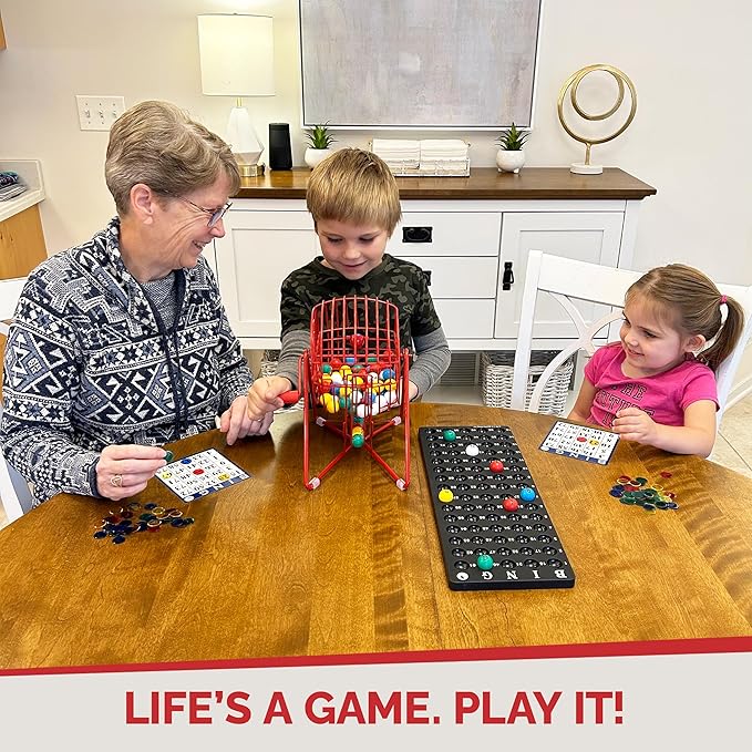 - PREMIUM QUALITY BINGO GAME SET: Our bingo set contains an 11" (Inch) tall (7" wide barrel) professional rust-proof steel bingo cage, 7/8 Inch bingo balls with sturdy bingo master board, 300 plastic bingo chips and 18 reusable bingo cards. With our bingo game, you will get what you paid for: quality materials and construction. Satisfaction is guaranteed. This bingo game for adults is so impressive that you’ll want to keep it for generations!