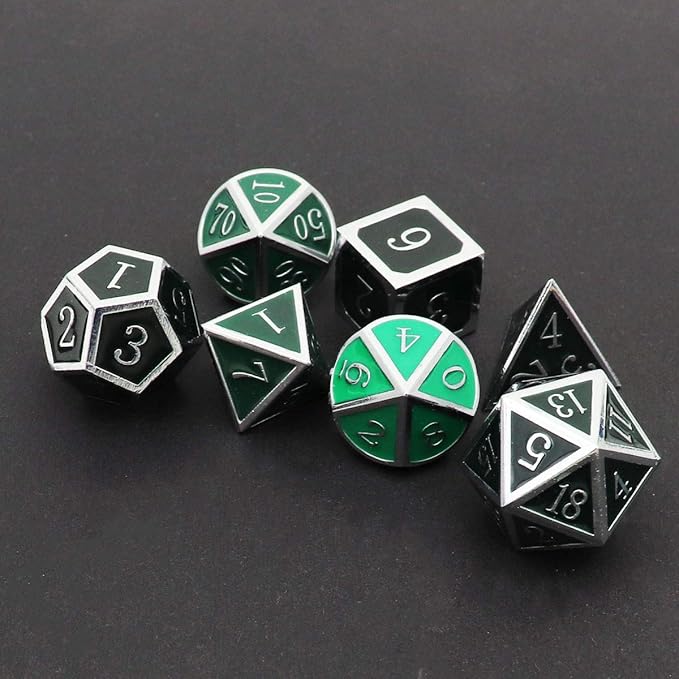 - Silver Black Green Color Changing Temperature Metal Dice Set D4, D6, D8, D10, D100, D12, D20