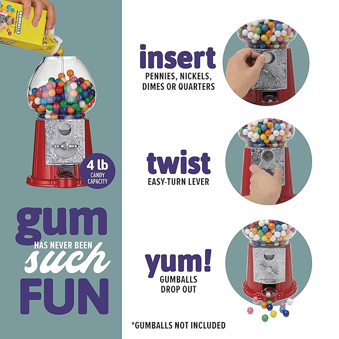 - FUN HOME DECOR AND GIFT IDEA! This candy dispenser machine also doubles as a fun, fancy alternative to the classic piggy bank! The nostalgic appeal makes it a fantastic piece of retro home decor. A great gift for kids & adults on birthdays and holidays throughout the year.