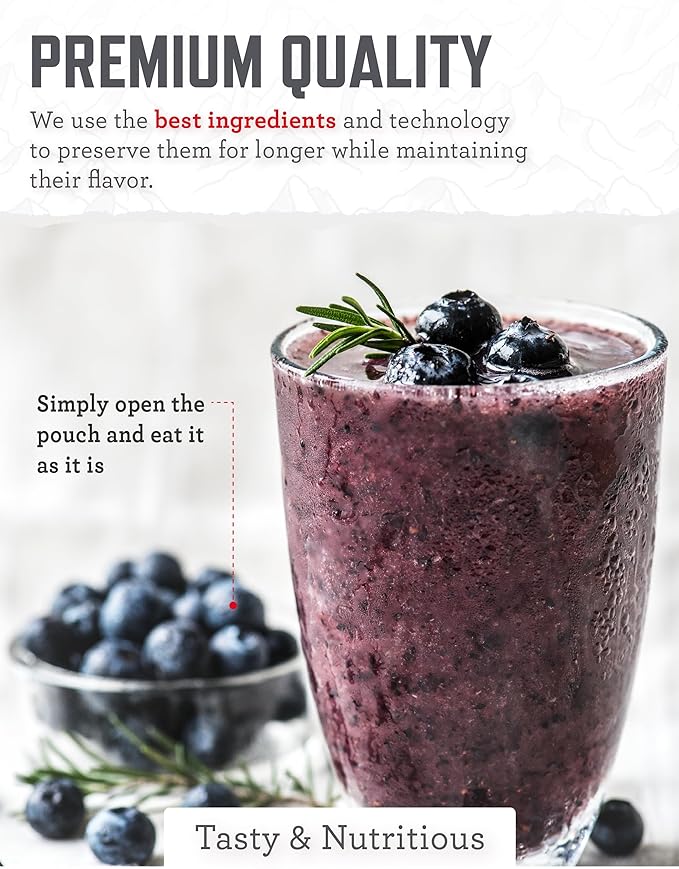 - NUTRITIOUS MEALS: Our survival food kit offers not only convenience but also tasty, nutrient rich freeze dried fruit options, such as freeze dried blueberries, apples, strawberries, and bananas to enhance your camping meals in a reliable way.
