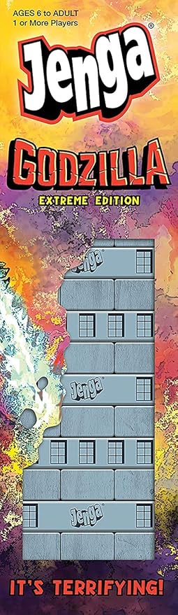 - Collectible Jenga edition featuring classic kaiju monster Godzilla on a rampage to destroy the tower