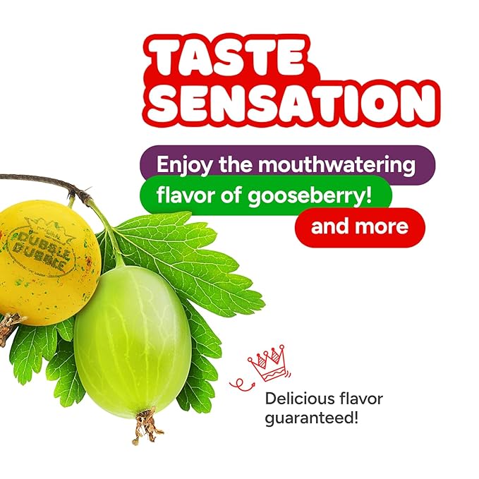 - ASSORTED BERRY FLAVOR: Bubble gum balls offer five delicious tastes - Gooseberry, Blueberry, Raspberry and berry mix - all in one pack. These brightly colored gum balls are 1 Inch (25 mm) in size, making them the perfect addition to any candy buffet or as a stand-alone treat