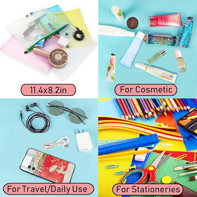 AUSTARK 20 Pcs Zipper File Bags, Plastic Mesh Pouch, Board Game Storage Bag, Waterproof Bags for Office School (B5 Size 11.4''x8.2'', Multicolored)