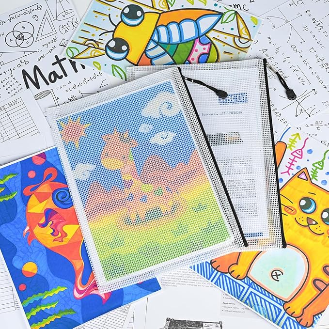 AUSTARK 20 Pcs Zipper File Bags, Plastic Mesh Pouch, Board Game Storage Bag, Waterproof Bags for Office School (A4 Size 13.4''x9.4'', White and Black)