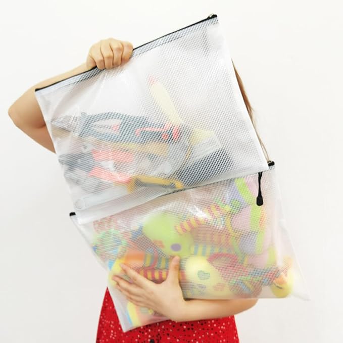 - Mesh pouches with translucent design. A solid PVC grid layout with moderate transparency could distinguish things in it easily, also protect your privacy at the same time