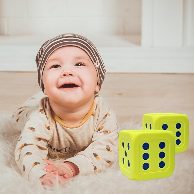 Macro Giant 6 Inch PU Foam Jumbo Big Playing Dice, Set of 2, Neon Yellow, Math Teaching, Teaching Aids, Board Games, Kid Toy