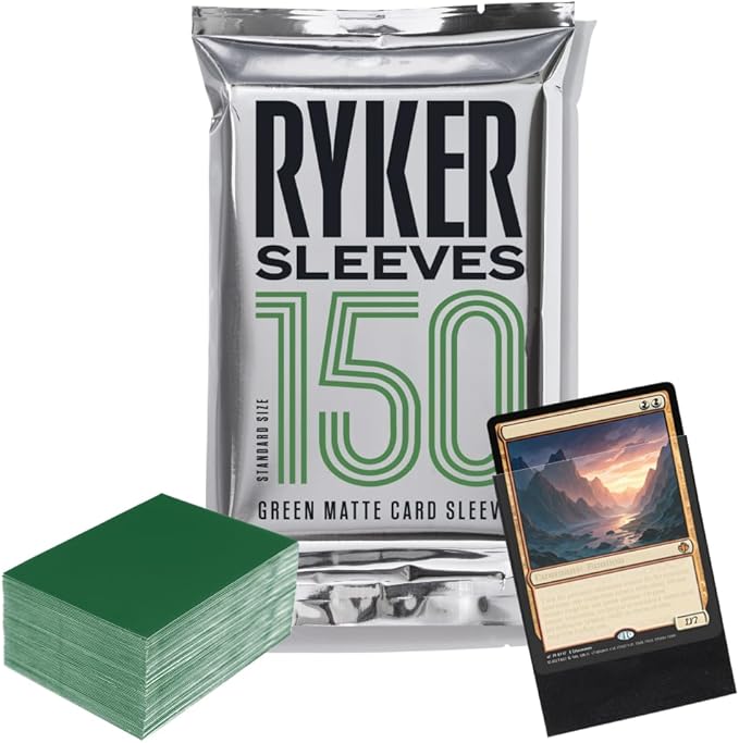 Ryker Sleeves Standard Size Matte Card Sleeves Compatible with Magic The Gathering MTG Pokemon Trading Cards and Board Games (1 Pack, Green)