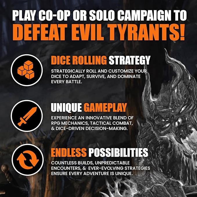 - RPG DICE GAME: Have hours of fun with this strategic RPG dice game in the mythical land of Daelore as you restore order to the country side with a group of adventurers. Earn points and defeat the tyrants to win.