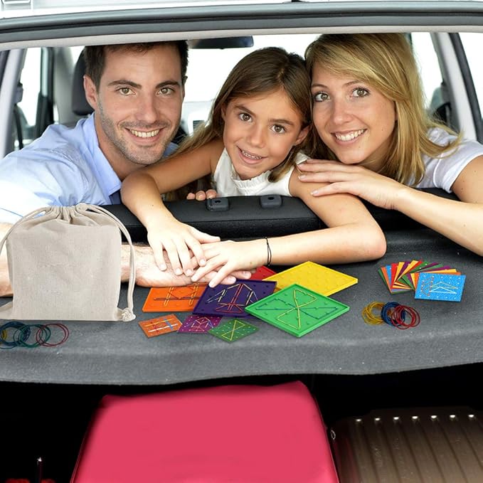 - LOOKING FOR GREAT GIFTS AND PRIZES? - Your kids will love this! It is an ideal birthday present, Christmas stocking stuffer, party favor, and Easter basket filler. Parents, grandparents, and nanas, as well as teachers would want to give this to their little ones. Comes with a storage bag where you can easily store and keep the geoboards. A great toy to bring when going on a car or plane trip or when going to a doctor's appointment or even at restaurants