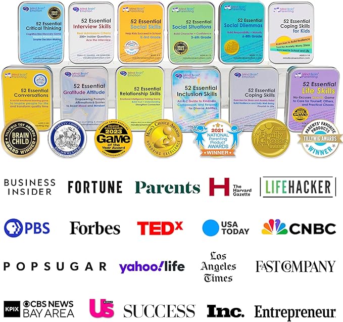 Mind Brain Emotion 52 Essential Coping Skills Cards - Self Care Exercises for Stress and Social Anxiety Relief - Resilience, Emotional Agility, Confidence Therapy Games for Teens, Adults