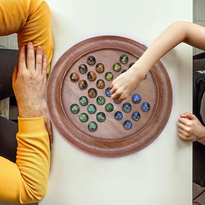 - 【EXQUISITE HANDCRAFTSMANSHIP】⇛ The Ajuny Wooden Solitaire Board Game features meticulous handcrafted design, highlighting exquisite craftsmanship that adds timeless elegance and charm to its aesthetic.