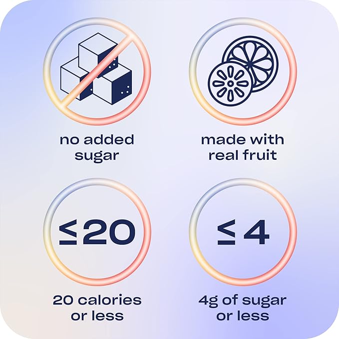 - LOW CAL: Zero added sugar, no fake stuff. Only 20 calories and 4g or less of sugar from fruit juice.
