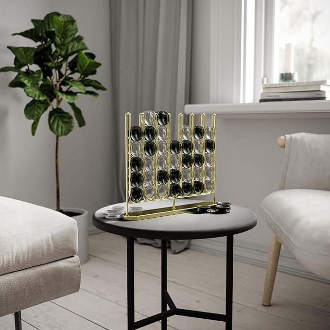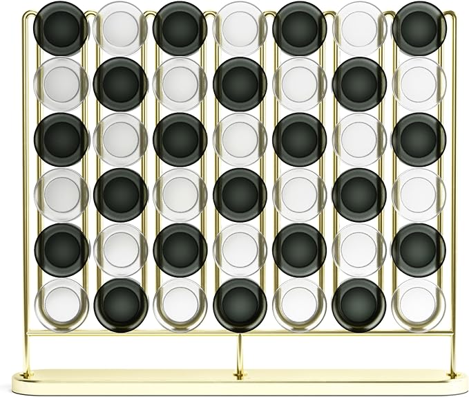 - MODERN METAL FINISH: Stax Four-in-a-Row has a metal plated finish and frosted playing pieces, doubling as a modern piece of decor that can be left out to display in your living space