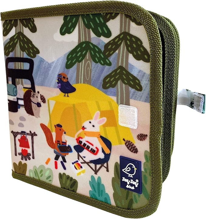 JJB & Friends Camping Doodle It and Go Activity Book | Erasable and Reusable Chalk Board Book | for Drawing and Creative Play | Portable & Mess-Free | Includes Dust-Free Chalk