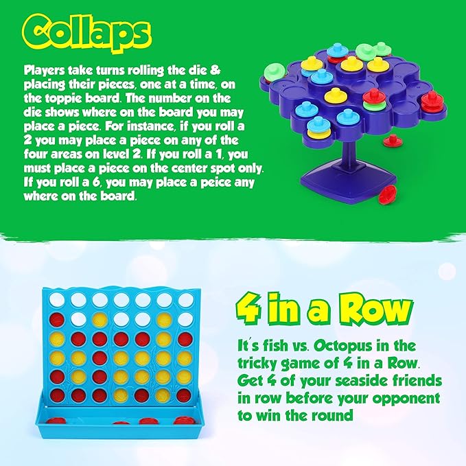 - DEVELOPMENTAL PLAY: Whether it be the strategic thinking for the Four in a Row game, the balance and and stability necessary for the Collapso game, or the quick thinking and planning ahead, you can rest assured that all four games will provide quality play.