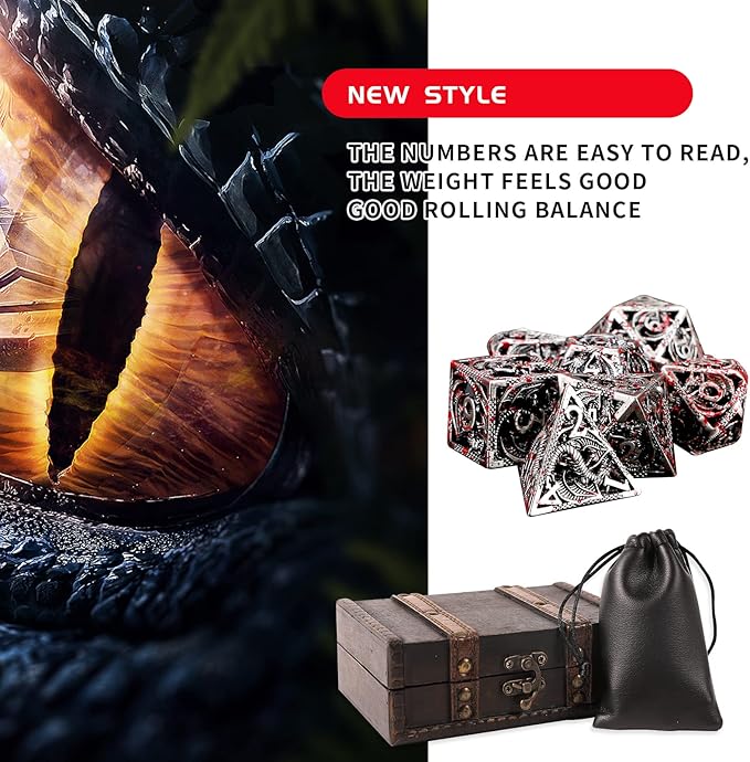 - 【New Hollow Design 】This is the new style Hollow metal dice set . There are bigger but lighter than normal metal dice.When you roll the dice,you will hear a sweet sound like a wind chimeThese dice are eye catching and can get lots of compliments at the table.It is a very popular dice gift for friends and famlily.