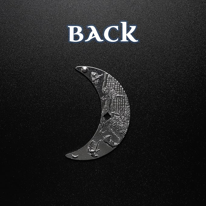 - 【Detail design of fantasy coin】 the metal coin oft his city is in the shape of the crescent moon, and its surface is in the color of platinum. Its front is carved with two patterns. The designer also has a small opening for you to wear and hang them on your hand or as a necklace