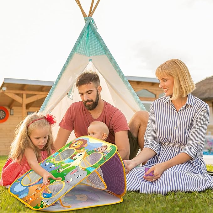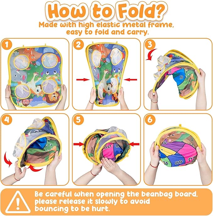 - 【Easy to Assemble & Storage】: Just open the package and take out the corn hole board, then glue the magic stickers on both sides. Easy to carry the bean bag toss toy to the park, yard, beach, back yard, lawn, camp, picnic, playground and so on. Meeting every needs in the portable travel. Great outdoor toys for toddlers age 4-8!