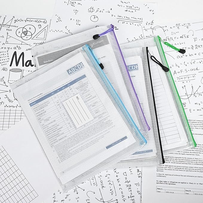 - 12 Pcs Mesh zipper bags with label pocket, A4 size 13.4 x 9.4 inch. Widely used in Office Home Hospital and Travel: Great zipper file bags, board game storage bags, pencils pouches, puzzles bags, cross stitch projects bags or keeping various craft projects organized. These mesh bags could meet your needs in all ways.NOTE: Manufacturer Minimum Age: Over 3 Years Old.