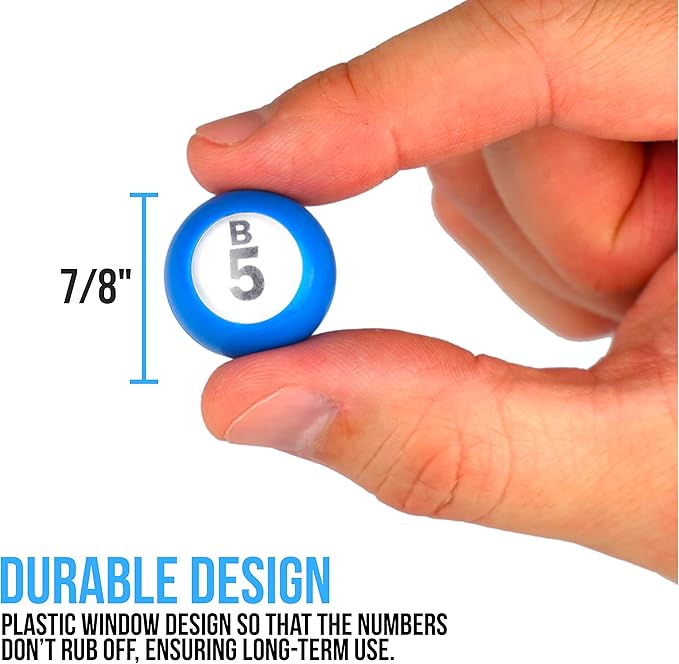 • Seamless Spin: Equipped with an 11” bingo cage with a wooden handle, this Bingo kit ensures fair play with random ball selection. The weighted selector prevents jams, while the wide catch keeps the balls organized and spill-free.