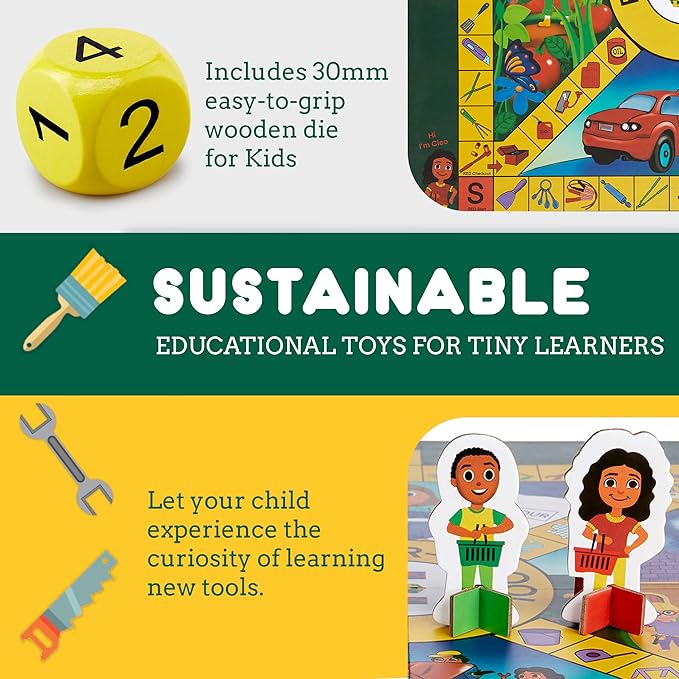 - Skill-Building Games - Our Snakes and Ladders and Roll-For-A-Tool Board Game for Kids includes an easy-to-grip wooden dice. These kid board games improve your child’s fine motor skills and hand-eye coordination, supporting their early development.